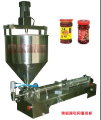 1. 辣酱灌装机:将辣酱底料、汤料均匀搅拌并灌装到容器瓶中。