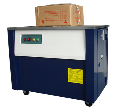半自动打包机(高台标准型)可以实现自动打包,但台面无动力,需要人工推一下,包装物品才能通过打包机。