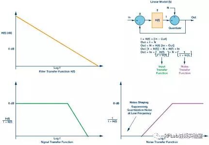 图5.Mod 1 Σ-Δ环路的线性模型(b),包括方程、滤波器、信号和噪声传递函数图