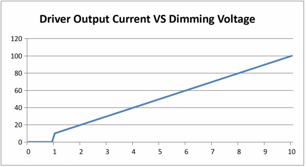 9.调光接口:1 路符合 IEC60929 标准的 0-10V 调光接口。调光曲线如下: