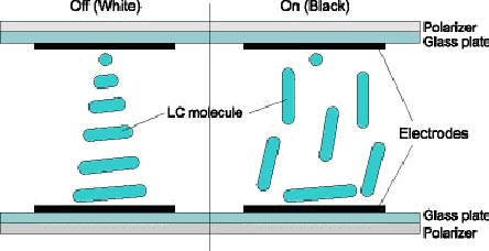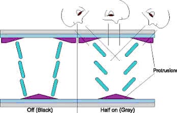 图1 TN+Film的显示器对准液晶于基版的垂直方向,与标准的TFT-LCD一样。有了在上层表面的一层膜就可以增加视角。