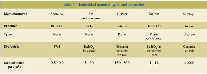 一些公司也在开发新的具有更高电容量的产品。其中有些是分布式电容型的,另外一些是分立嵌入式的。DuPont 和 3M正在开发分布式电容产品,通过在绝缘层中填充钛酸钡(一种具有高介电常数的材料)来获得更高的电容量。3M公司的产品C-Ply使用了一种环氧的粘合剂,而DuPont的产品HiK则使用了一种聚酰亚胺的粘合剂。