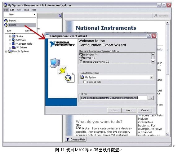 答:您现在可以使用NI-DAQmx里的导出功能来在机器间转移您的硬件配置。